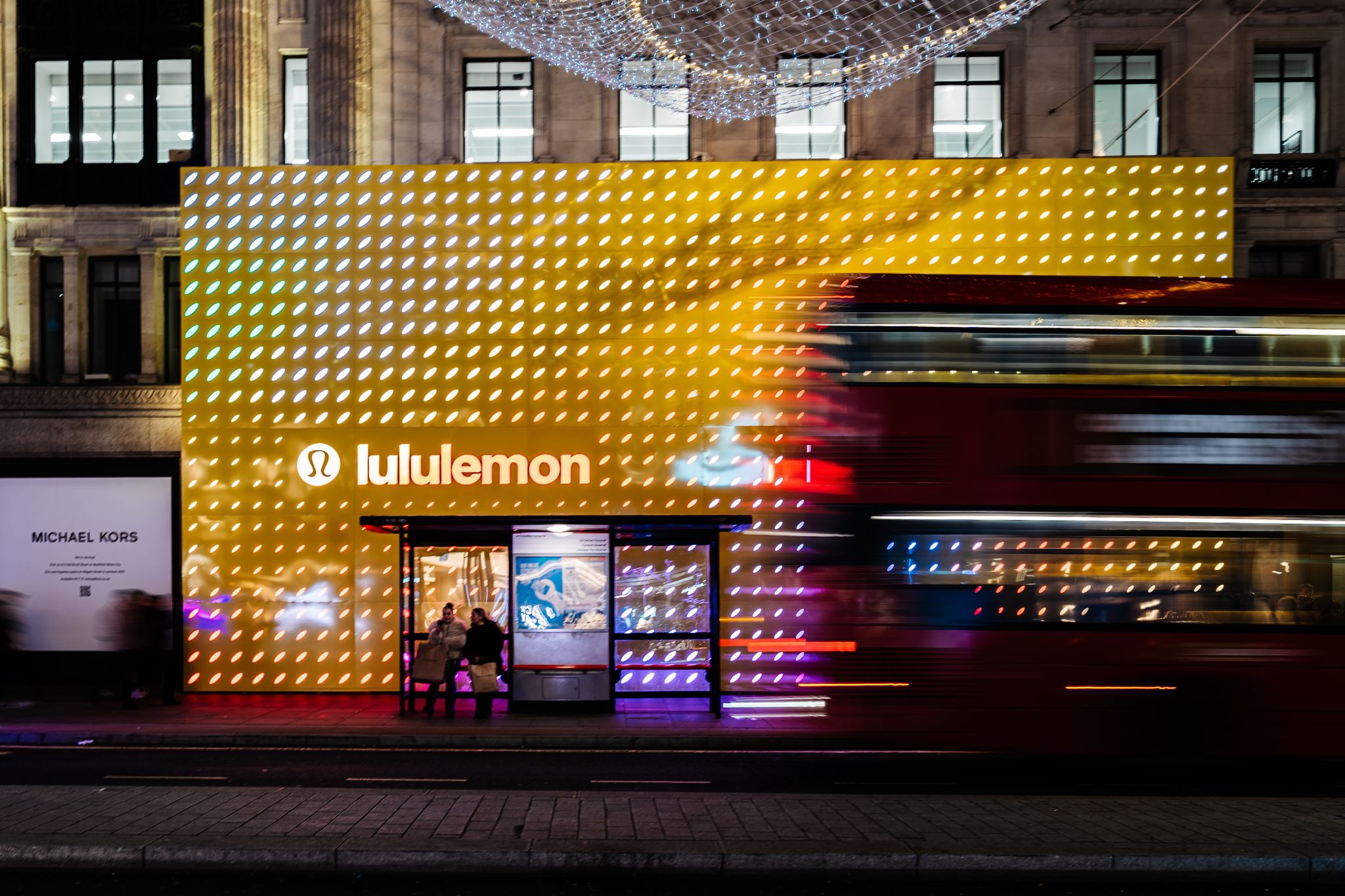 As people move nearby, the façade generates a shifting “shadow” in color, translating motion into light. Alongside this reactive layer, autonomous light sequences continuously evolve, combining programmed patterns with real-time interaction.